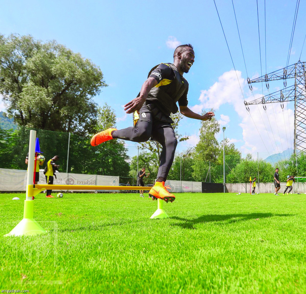 صورة التقطت أمس لفهد المولد مهاجم فريق الاتحاد الأول لكرة القدم ينفذ تدريبات لياقية خلال الحصة المسائية للفريق في معسكر النمسا (المركز الإعلامي ـ الاتحاد)