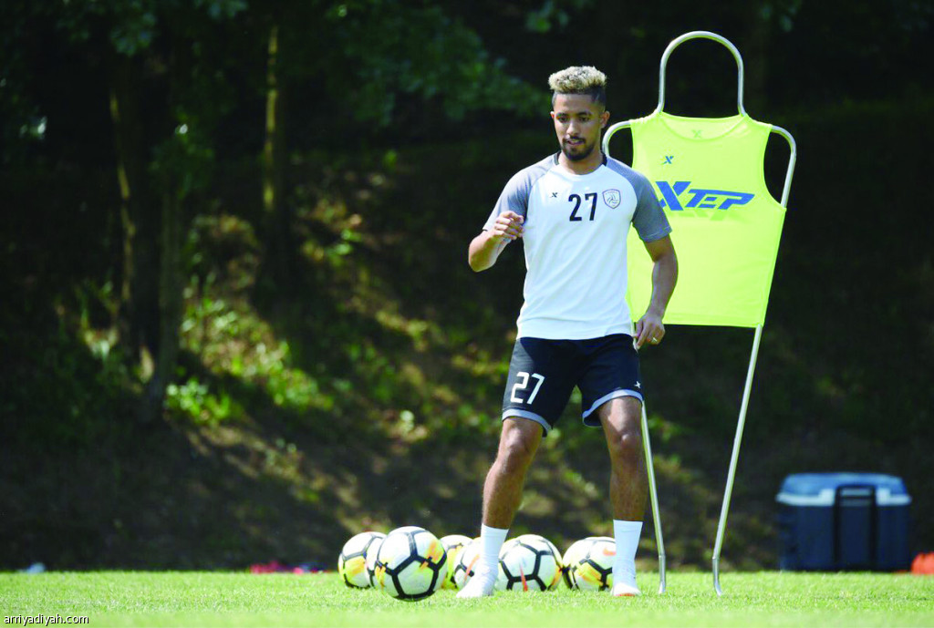 صورة التقطت أمس لهتان باهبري لاعب الشباب يؤدي تمارين بالكرة (المركز الإعلامي ـ الشباب)