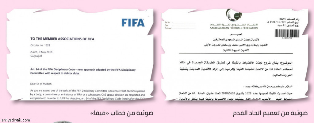 ويرتبط التعميم الذي وقعه لؤي السبيعي الأمين العام، بشروع لجنة الانضباط في "فيفا" في تطبيق طريقة جديدة لإنفاذ أحكام المادة 64 من لائحتها، بغرض إلزام الأندية المدينة بتنفيذ القرارات المالية.