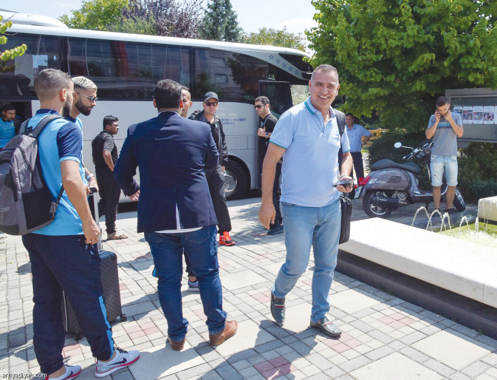 صورة التقطت أمس لفتحي الجبال مدرب الفتح وعدد من مساعديه واللاعبين لحظة وصول بعثة الفريق إلى سلوفينيا (المركز الإعلامي ـ الفتح)