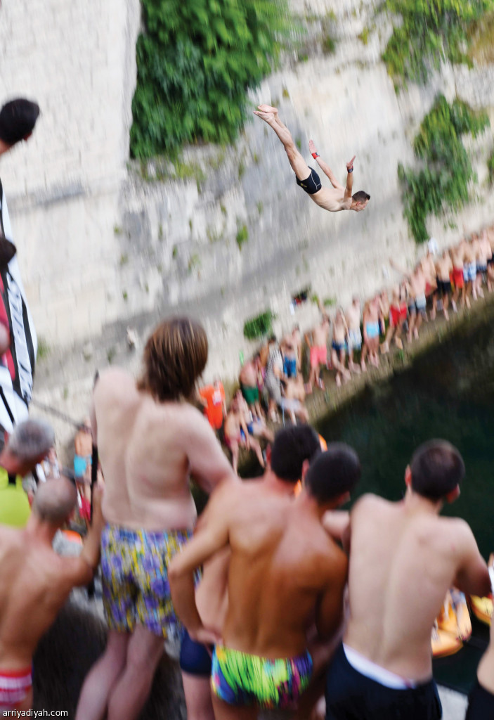 تشهد مدينة موستار البوسنية منذ عقود مسابقة تقليدية للقفز من أعلى الجسر القديم بها.