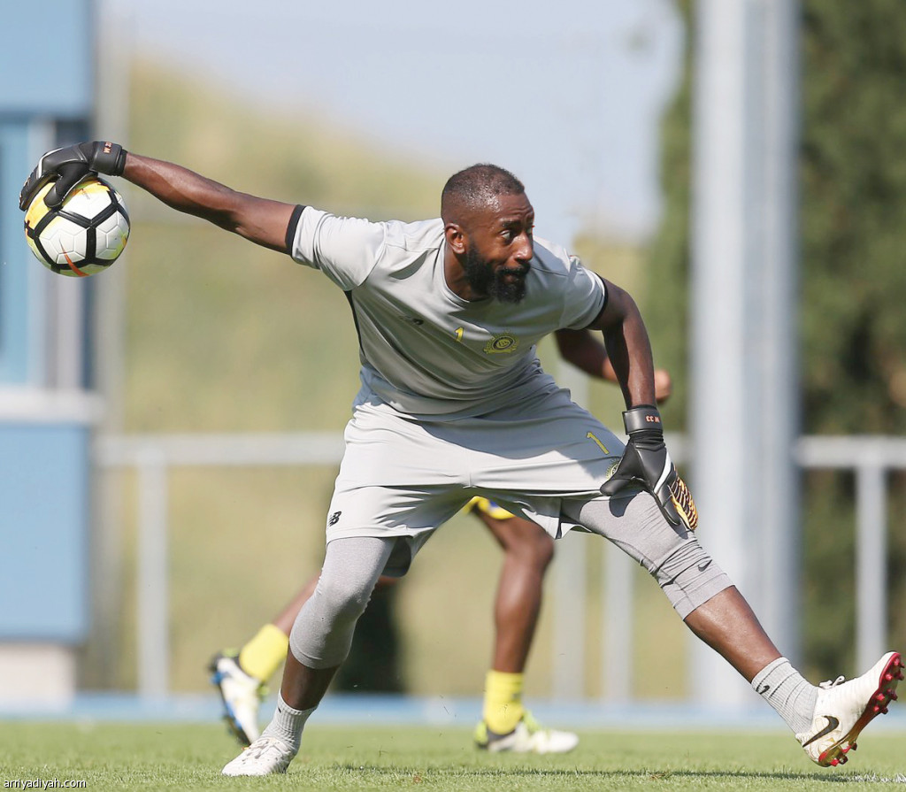 يتقدم الدولي وليد عبد الله قائمة الحراس السعوديين الأربعة الذين ينافسون الأجانب في الدوري الموسم الجديد.. وفي الصورة التي التقطت أمس يتصدى وليد لإحدى الكرات خلال تدريبات حراس النصر (المركز الإعلامي ـ النصر)
