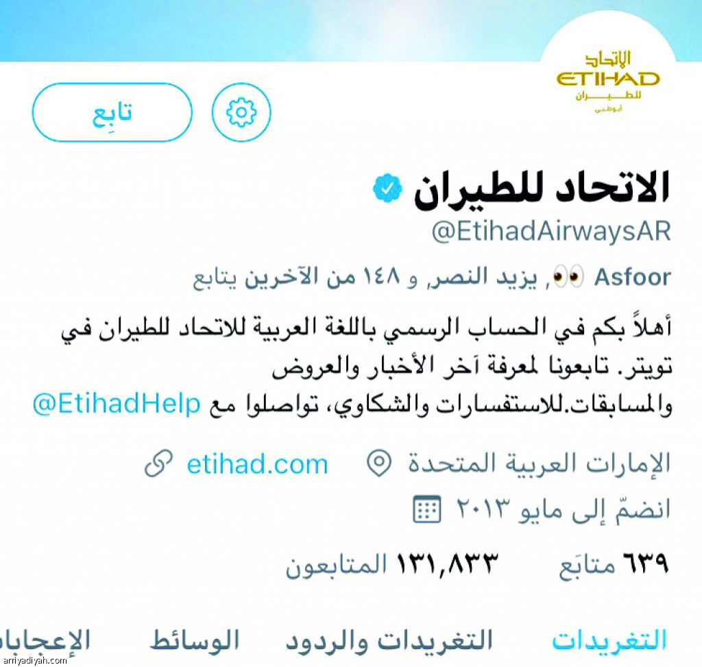 زاد عدد متابعي حساب طيران الاتحاد الإماراتية عبر موقع التواصل الاجتماعي تويتر بعد الإعلان الرسمي عن توقيع عقد الرعاية مع نادي النصر إلى قرابة الـ50 ألف متابع في ساعات معدودة إلى أن وصل 130 ألفاً.