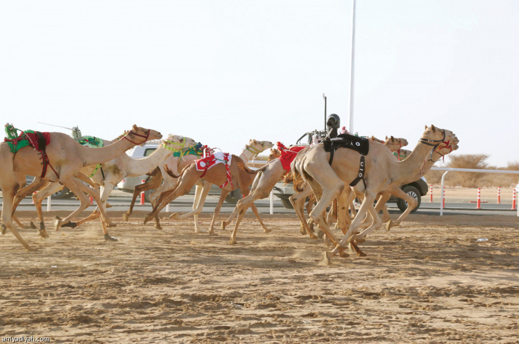 صورة التقطت من سباقات أمس في مهرجان ولي العهد للهجن الذي تحتضن الطائف منافساته تصوير: غازي مهدي