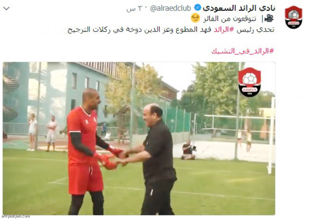 نشر حساب نادي الرائد فيديو ظهر فيه رئيس النادي فهد المطوع متحديا حارس الفريق عز الدين دوخة على تنفيذ الركلات من نقطة الجزاء، حيث كسب دوخة التحدي وتغلب على الرئيس وكانت المشاهدات قد وصلت إلى 3 آلاف مشاهد، وكانت التعليقات تشكر الجهود التي يبذلها المركز الإعلامي.