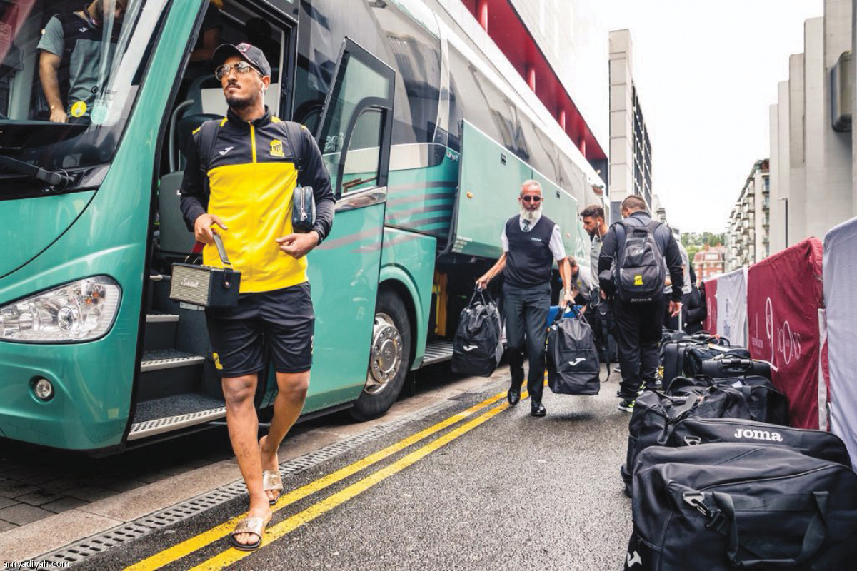 تزايدت سرعة العد التنازلي قبل مواجهة السوبر السعودي بين الاتحاد والهلال على كأس الهيئة العامة للرياضة في ظل ارتفاع وتيرة الاستعدادات بين الطرفين اللذين وصلا إلى مسرح الموقعة المنتظرة غدا السبت.. وفي الصورة التي التقطت أمس فواز القرني حارس الاتحاد ينزل من الحافلة التي أقلت بعثة فريقه بعد الوصول إلى لندن تأهبا لخوض اللقاء (المركز الإعلامي ـ اتحاد القدم)