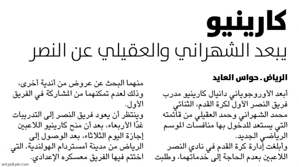 أعارت إدارة نادي النصر حمد العقيلي، ومحمد الشهراني، لاعبي الفريق الأول لكرة القدم، إلى ناديي المجزل وضمك، على الترتيب.