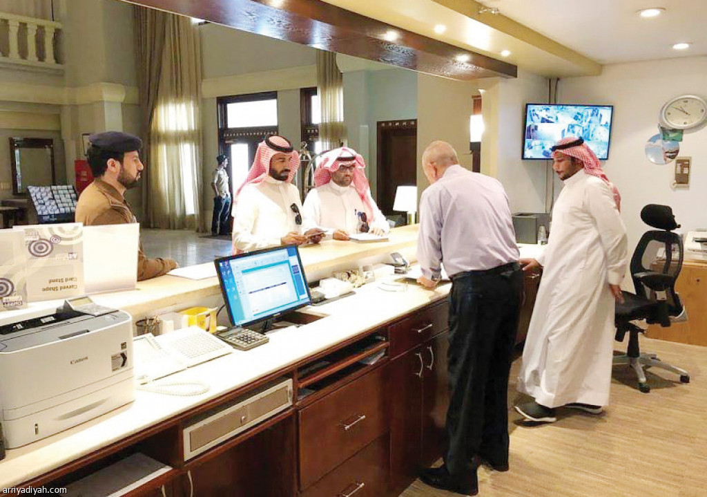 صورة التقطت أمس لفريق التفتيش في الجوف خلال الزيارة لإحدى المنشآت السياحية (واس)