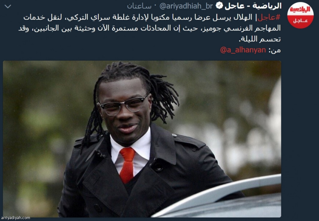 تفاعل متابعو "الرياضية عاجل" في "توتير" مع تغريدة الحساب عن العرض الرسمي المكتوب، الذي تقدَّم به نادي الهلال إلى نظيره غلطة سراي التركي للاستفادة من خدمات بافيتيمبي جوميز، المهاجم الفرنسي، حيث تجرى محادثات حول ذلك بين الجانبين.