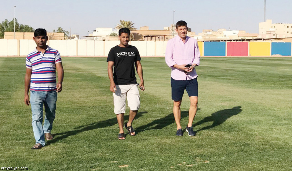 صورة التقطت أمس للروماني إيسايلا مدرب فريق الحزم يتفقد الملعب الرئيس في النادي.. وكان مقررًا أن يستأنف الفريق تدريباته اليوم على الملعب لكنه سيخوضها على الرديف لحين الاكتمال التام لأعمال الصيانة تصوير: فهد البطاح