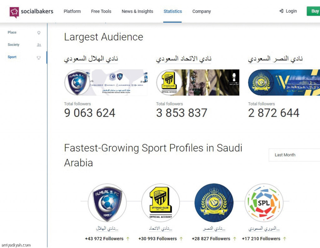 تصدر الهلال نتائج موقع socialbakers العالمي المتخصص في إحصائيات مواقع التواصل الاجتماعي، في تقريره عن شهر يوليو 2018 لأكثر الحسابات الرياضية شهرة عن فئات الأندية والحسابات الرسمية، بأكثر من 9 ملايين متابع.