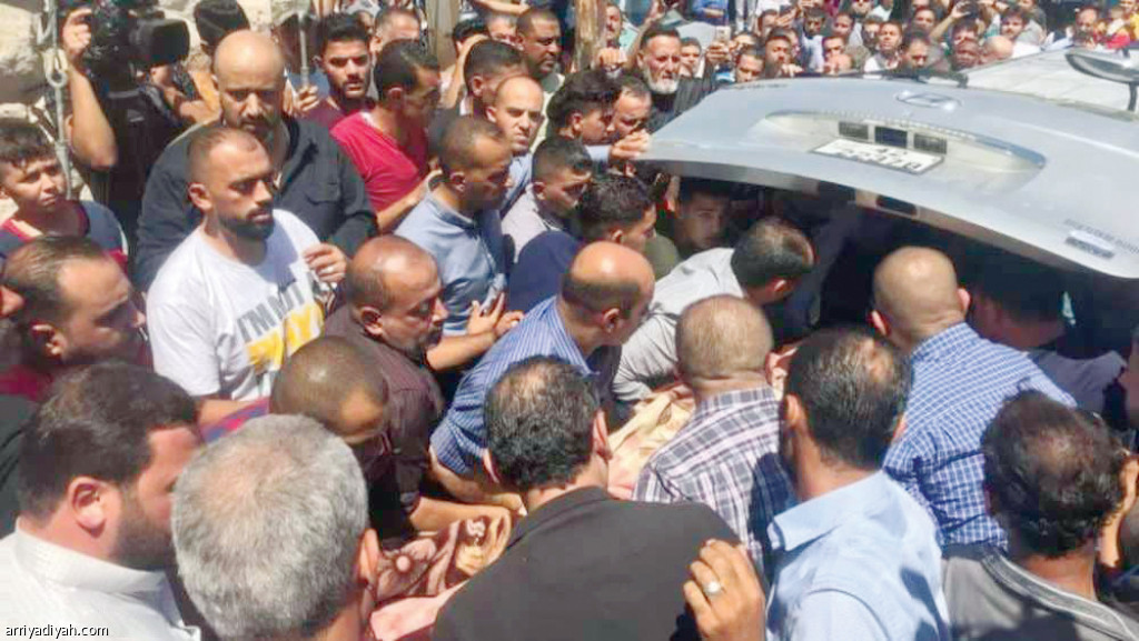 صورة التقطت أمس لأردنيين يحملون جثمان ياسر المصري (موقع سكاي نيوز عربية)