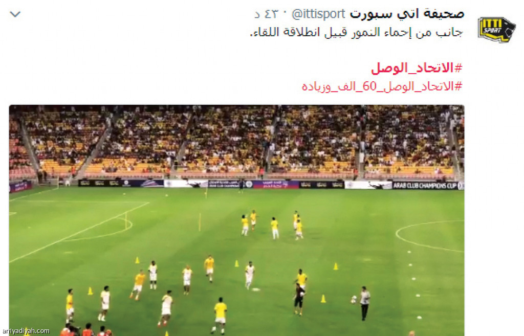 أطلقت الجماهير الاتحادية هاشتاقًا بعنوان #الاتحاد_الوصل عبر موقع التواصل الاجتماعي "تويتر" قبل انطلاق مواجهة فريقها، أمس الجمعة، أمام الوصل الإماراتي ضمن كأس العرب للأندية الأبطال. وبلغ عدد زوار الهاشتاق 3.585.695 زائرًا، و2.985.584 مشاركًا. وتنوَّعت تفاعلات مستخدمي "تويتر" مع الهاشتاق، حيث بلغت نسبة إعادة التغريد 89 في المئة، فيما بلغت نسبة التفضيل 10 في المئة، أما الردود فبلغت 1 في المئة.