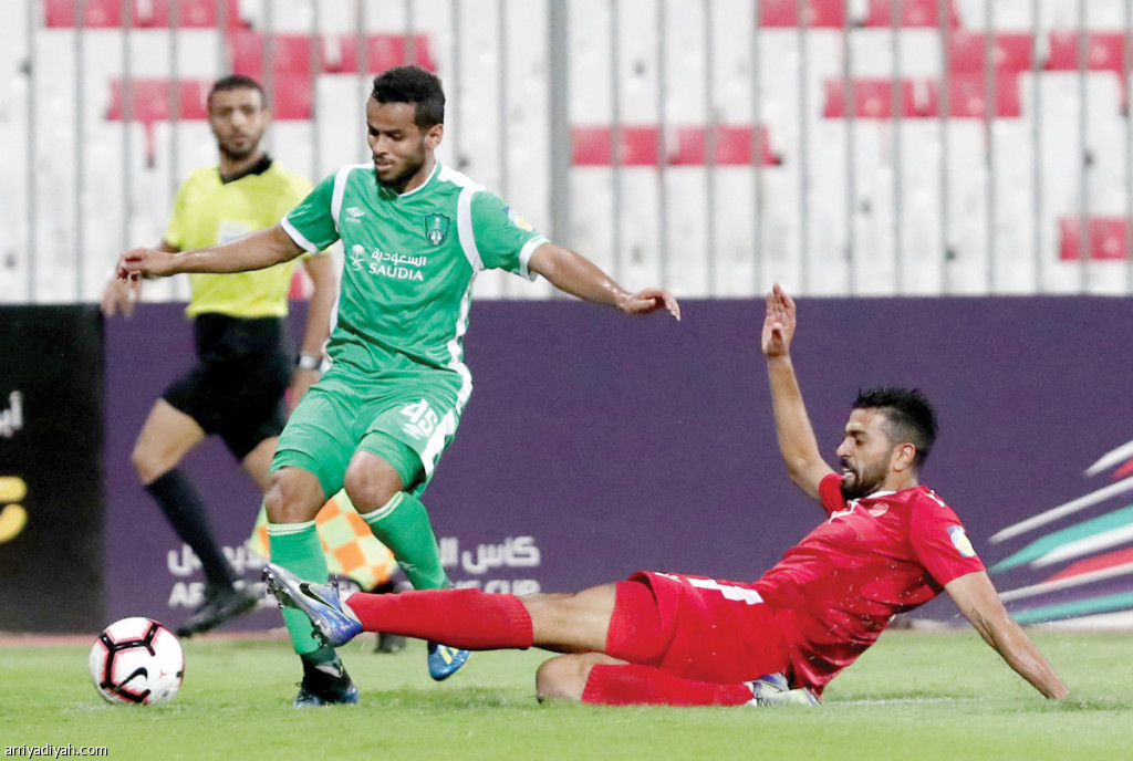 صورة التقطت أمس لعبد الفتاح عسيري يقود هجمة أهلاوية على مرمى المحرق