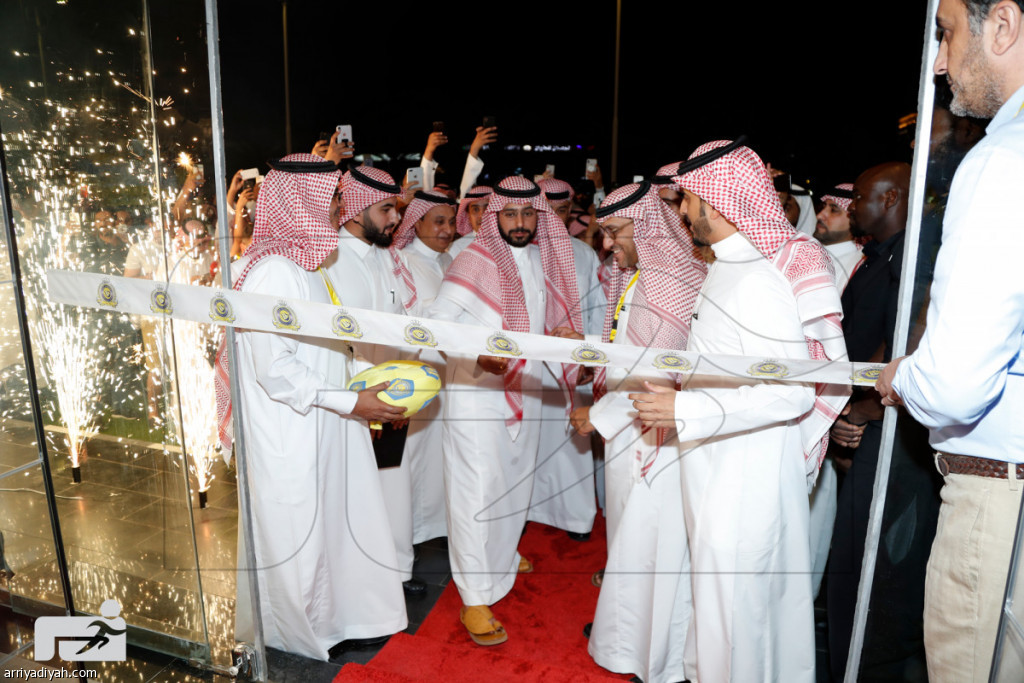 صورة التقطت أمس من افتتاح متجر نادي النصر ويظهر أحمد البريكي وعبد الكريم المنصور وتركي الشويعر أعضاء مجلس إدارة النادي خلال قص شريط الافتتاح تصوير: بشير صالح