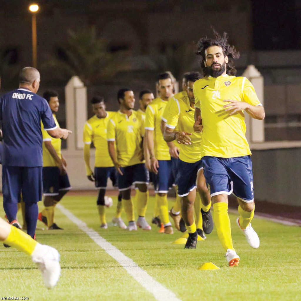 صورة التقطت أمس لحسين عبدالغني قائد فريق أحد يؤدي التدريبات اللياقية(المركز الإعلامي ـ أحد)