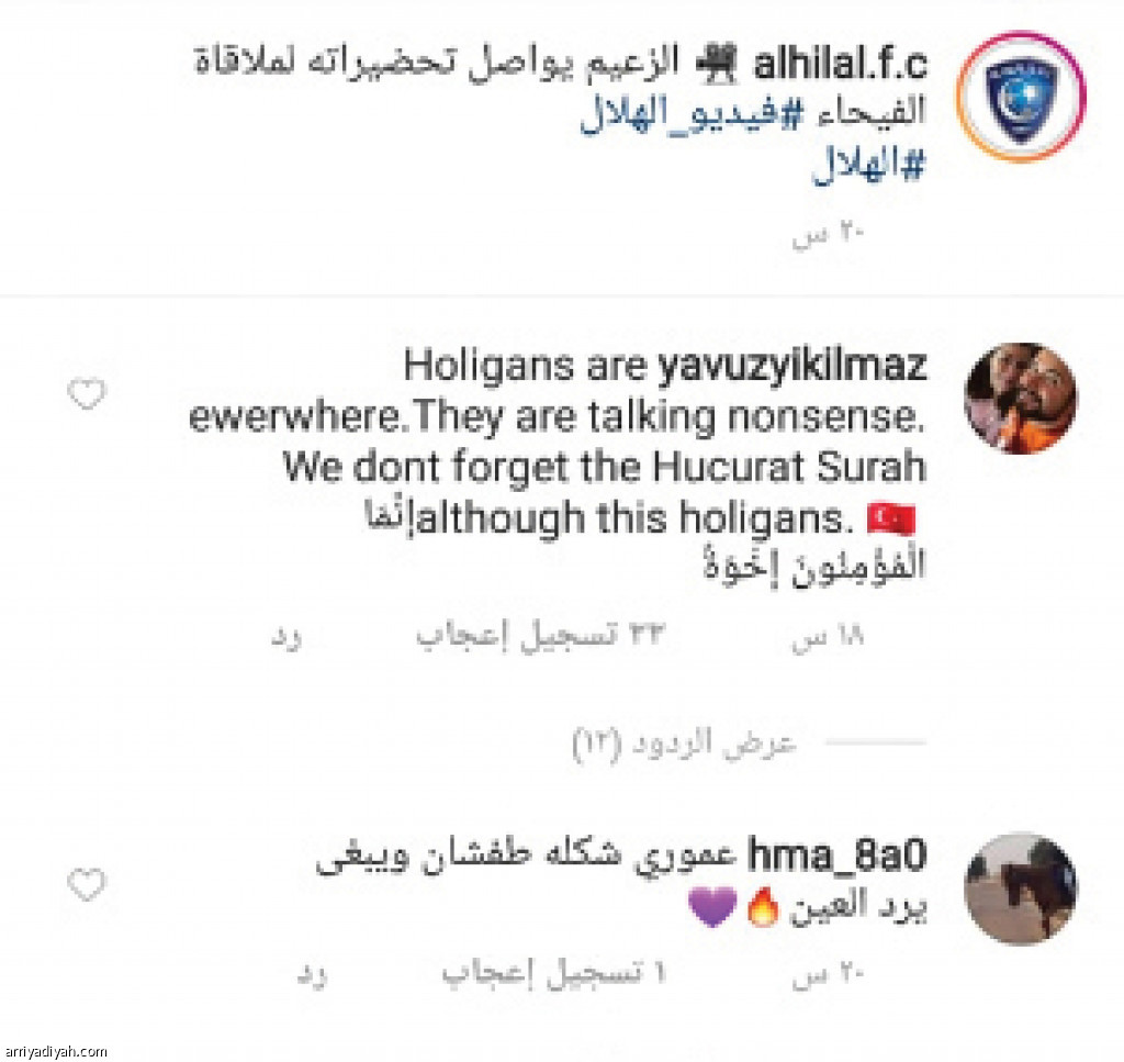 شارك عدد كبير من جماهير غلطة سراي التركي في حساب نادي الهلال بموقع التواصل الاجتماعي “إنستجرام” في ردود لهم على مقطع فيديو نشره حساب النادي لاستقبال اللاعبين للفرنسي بافيتيمبي جوميز في أول تدريب يشارك فيه اللاعب.