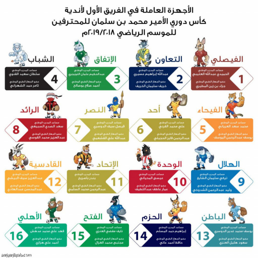 اكتمل، أمس، الحضور السعودي في الأجهزة الفنية والطبية للفرق الـ 16 لدوري الأمير محمد بن سلمان للمحترفين، قبل يوم واحد من انطلاق مبارياته. وعيّن كل نادٍ سعودياً في منصب مساعد المدرب وآخر في الجهاز الطبي، تنفيذاً لما اشترطه الاتحاد السعودي لكرة القدم خلال اجتماعه في 29 إبريل الماضي. ومساء الأربعاء، أعلنت الهيئة العامة للرياضة وفاء الأندية الـ 16 بالاشتراط. وكان تركي آل الشيخ، رئيس الهيئة العامة للرياضة، أوضح، أمس الأول، أن أي نادٍ لا يطبق ذلك الاشتراط لن يسمح له بالمشاركة في الدوري.