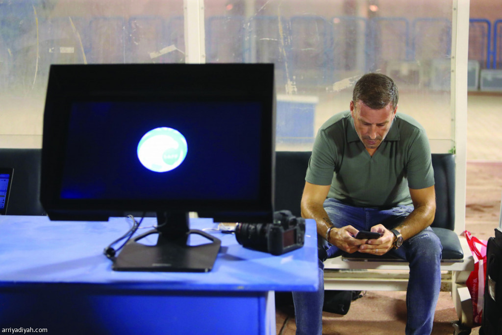 صور التقطت أمس للإنجليزي مارك كلاتنبرج رئيس لجنة الحكام الرئيسة خلال قيادته طاقم تقنية حكم الفيديو المساعد “VAR” في مباراة الاتفاق والرائد تصوير: عيسى الدبيسي