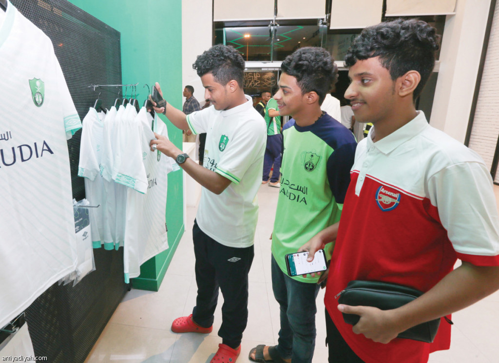 على صعيد مختلف، أقبل مشجعو الأهلي بكثافة على متجر النادي، في شارع التحلية في جدة، لشراء القميص الأبيض للفريق، بعد طرحه أمس.