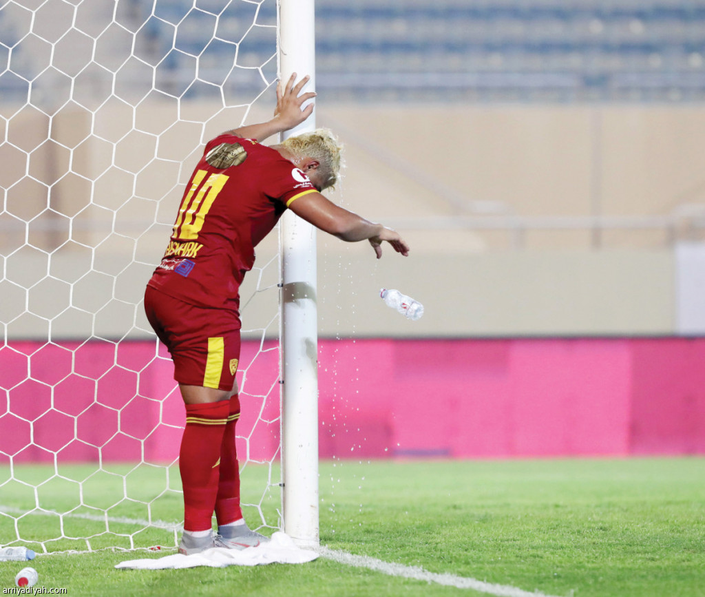 صورة التقطت أمس الأول للبرازيلي بيسمارك لاعب القادسية يرش الماء على وجهه بسبب الحرارة العالية خلال مباراة الفريق أمام الفتح تصوير: عيسى الدبيسي