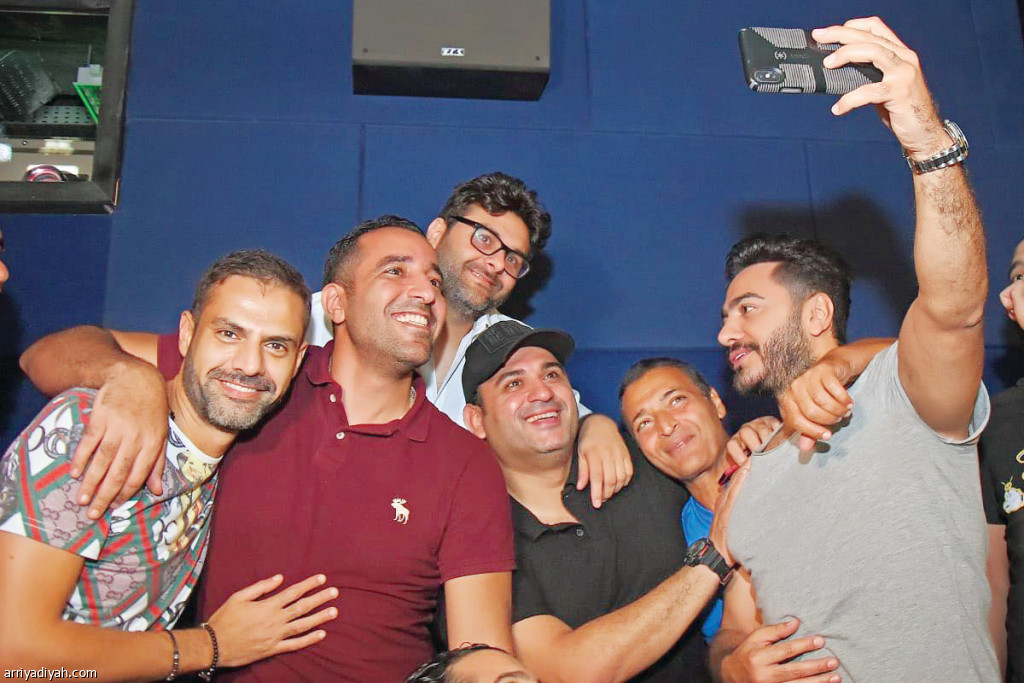 صورة التقطت لتامر حسني مع طاقم فيلم "البدلة" (عين المشاهير)