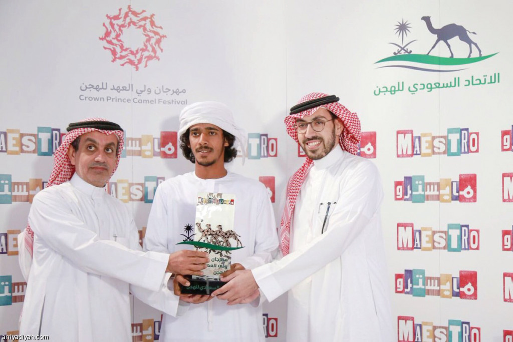 صورة التقطت أمس لأحمد الجاسر مدير التسويق في مايسترو بيتزا أثناء تكريم الفائزين في أشواط اللقايا قعدان (المركز الإعلامي ـ اتحاد الهجن)