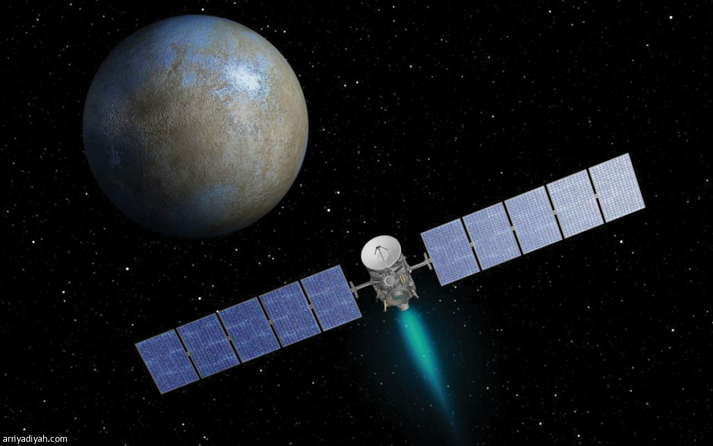 صورة فنية أنتجتها وكالة الفضاء الأمريكية لمركبة الفضاء "دون" خلال مهمتها (ناسا)