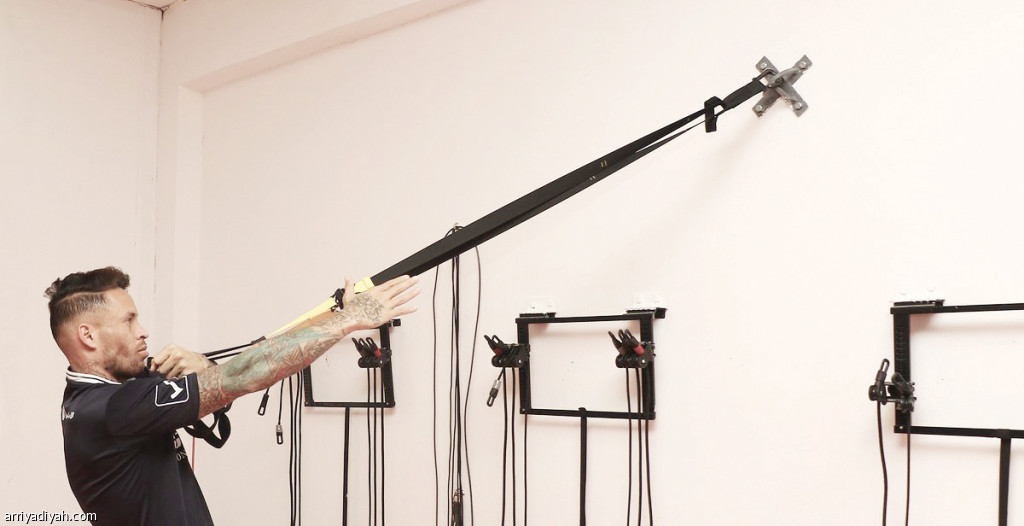 صورة التقطت أمس للكولومبي أندرس براكا في صالة الحديد أثناء التدريبات الصباحية (المركز الإعلامي ـ الباطن)