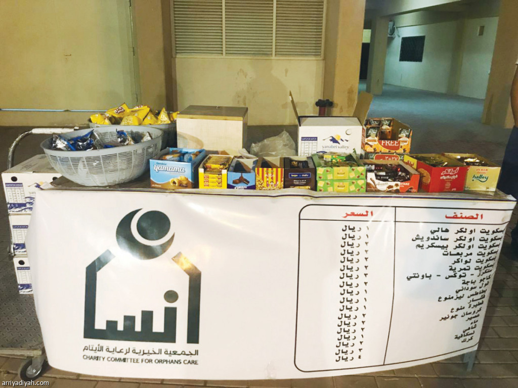 صورة التقطت أمس لبسطة خاصة بجمعية إنسان لبيع المأكولات والمشروبات تصوير: حماد الدوسري
