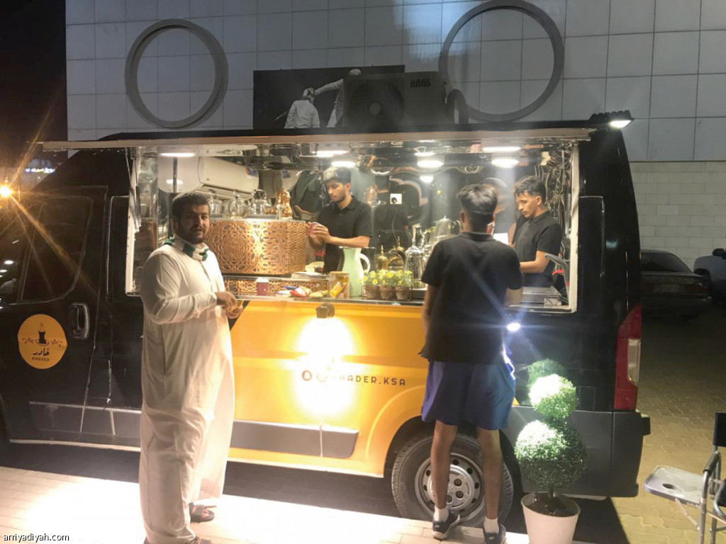 صورة التقطت أمس لعربة «فود تراك» في محيط ملعب الأمير فيصل بن فهد تصوير: حماد الدوسري