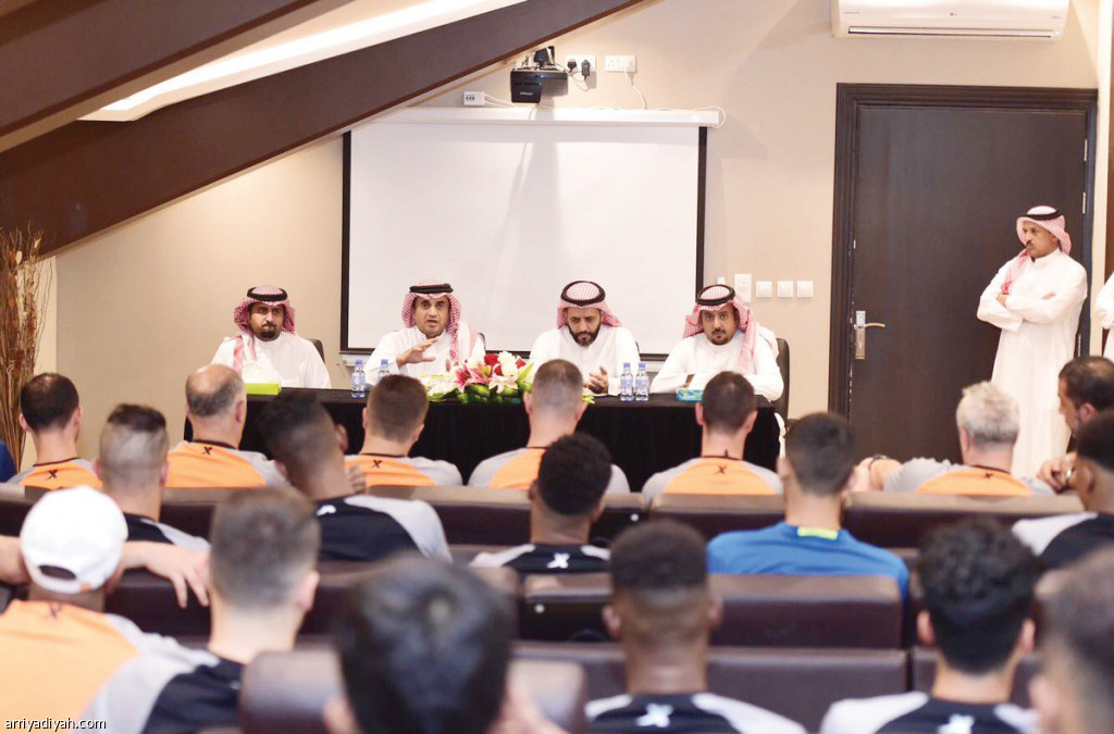 صورة التقطت أمس لخالد البلطان أثناء حديثه للاعبي الشباب المركز الإعلامي ـ الشباب)