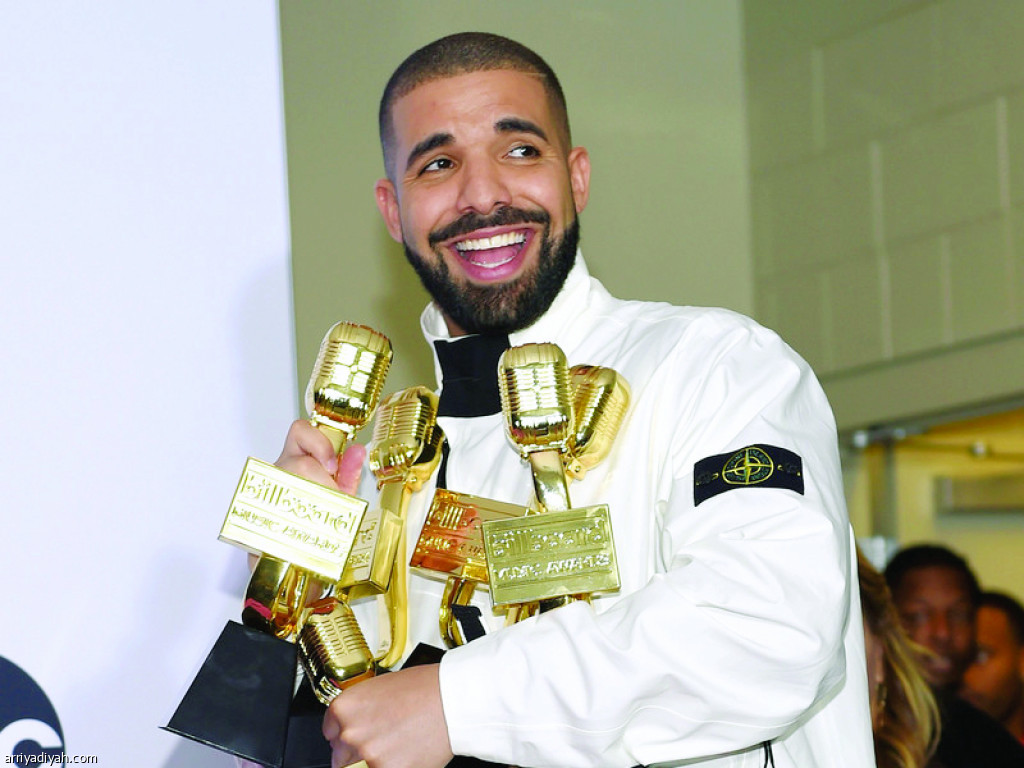 صورة التقطت للكندي دريك مغني الراب يحمل جوائز سابقة حققها في الموسيقى الأمريكية (أرشيفية)