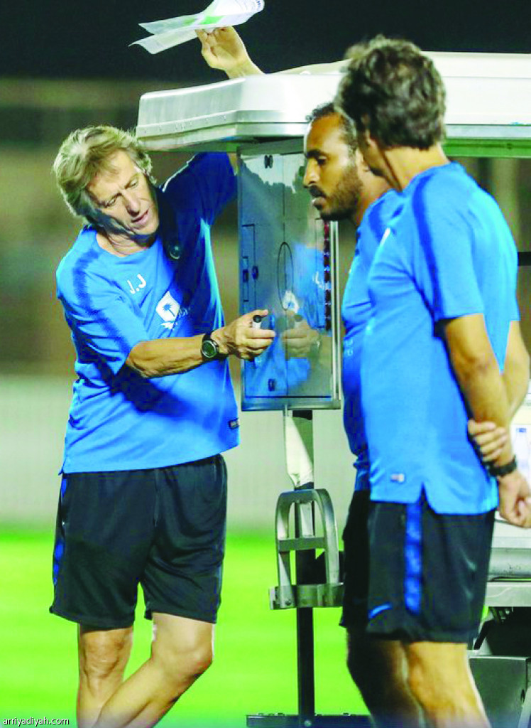 وفرض البرتغالي خورخي خيسوس، مدرب الفريق، مناورة تكتيكية من خلال اللحصة التدريبية المغلقة أمام الجماهير ووسائل الإعلام، وشرح للاعبين طريقة اللعب أمام الرائد، حيث أوقف الكرة عدة مرات لتصحيح أخطاء اللاعبين وشرح التنظيم الهجومي المفترض اتباعه خلال المباراة. وسيفتقد الهلال لخدمات لاعبه البيروفي أندري كاريلو عن لقاء فريقه أمام الرائد على ملعب مدينة الملك عبد الله الرياضية في بريدة، بعد تعرضه لإصابة في عضلة الساق خلال مشاركته مع منتخب بيرو في أيام "فيفا" الماضية، فيما استبعد خيسوس ناصر الدوسري من حساباته بعد الكدمة التي تعرض لها في الركبة.