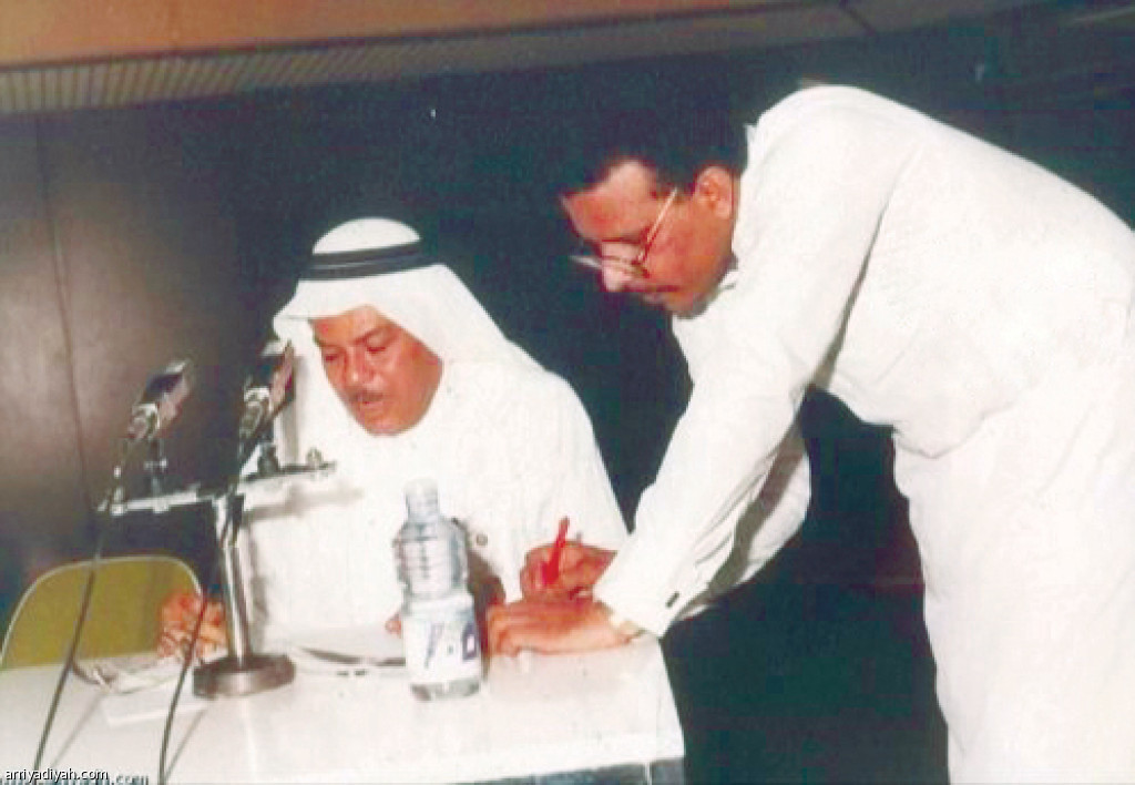 صورة التقطت لخالد قاضي مع زاهد قدسي "رحمهما الله" تعود إلى أوائل الثمانينيات الميلادية (أرشيفية)