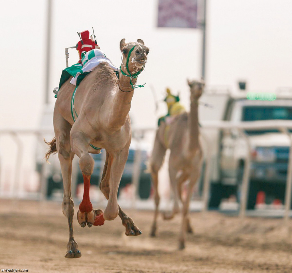 صورتان التقطتا أمس من منافسات الأشواط الدولية لمهرجان ولي العهد للهجن في ميدان محافظة الطائف (المركز الإعلامي ـ اتحاد الهجن)