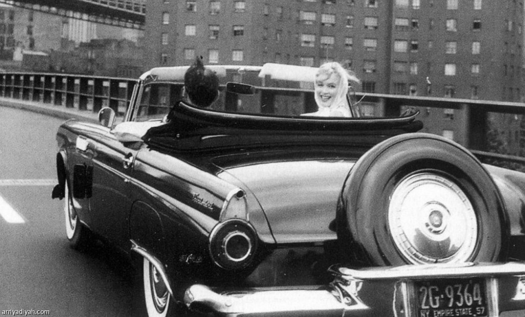 والتقطت صورا لمونرو وهي تقود السيارة مع زوجها آرثر ميلر الكاتب المسرحي بعد وقت قصير من زفافهما في يونيو 1956.