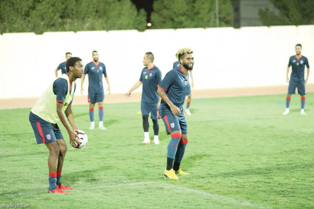 صورة التقطت أمس من تدريبات فريق الحزم استعداداً لمباراة اليوم أمام الفيصلي في بريدة ضمن الجولة الرابعة من دوري كأس محمد بن سلمان للمحترفين يبدو فيها اللاعبون ينفذون تمارين بالكرة (المركز الإعلامي ـ الحزم)