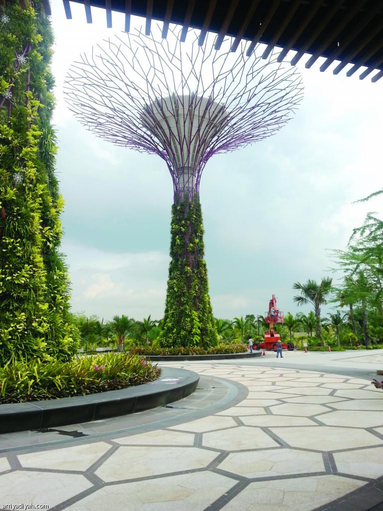 صورتان التقطتا لممرات وأشجار اصطناعية مغطاة بالنباتات الطبيعية داخل حدائق الخليج في سنغافورةتصوير: بهاء الدين فرح