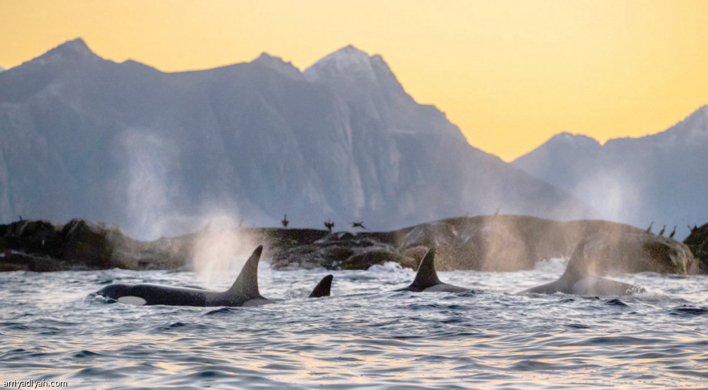 صورة التقطت لعدد من حيتان الأوركا تسبح قبالة سواحل شمال النرويج (ساينس)