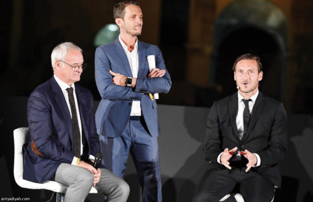 صورة التقطت أمس لكلاورديو رانيري مدرب منتخب إيطاليا الأول لكرة القدم وفرانشيسكو توتي لاعب فريق روما المعتزل خلال حفل تقديم كتاب توتي "الكابيتانو" الذي يحكي السيرة الذاتية للاعب خلال مسيرته الرياضية وذلك على مسرح الكلوزيوم في روما العاصمة الإيطالية
