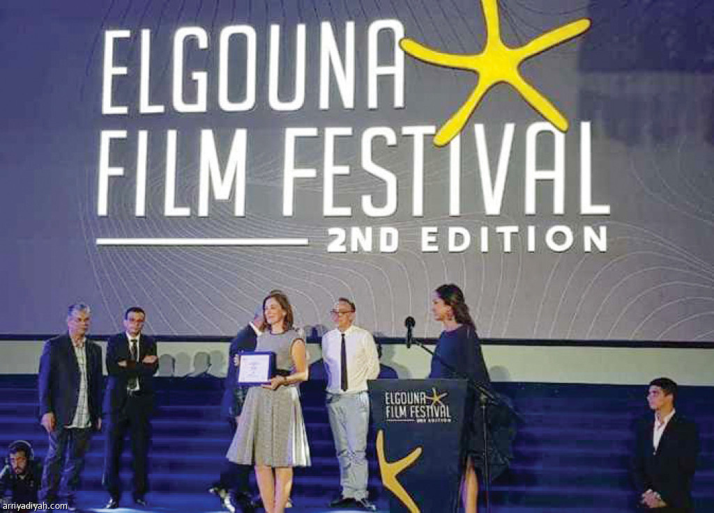 صورة التقطت من تكريم أبطال فيلم أرض متخيلة لتحقيقه الجائزة الكبرى بمهرجان الجونة السينمائي (الأوروبية)
