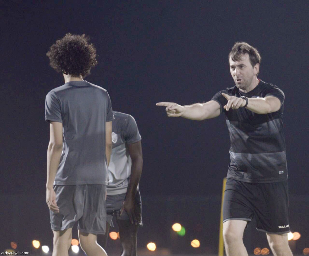 صورة التقطت أمس للصربي ديجان آرسوف المدرب المؤقت لفريق الطائي خلال التدريبات (المركز الإعلامي ـ الطائي)