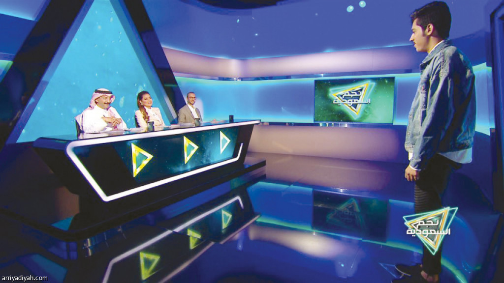 صورة التقطت لمتسابق أمام لجنة تحكيم برنامج نجم السعودية على قناة SBC والمكونة من عبادي الجوهر ووعد وممدوح سيف (المركز الإعلامي ـ SBC)
