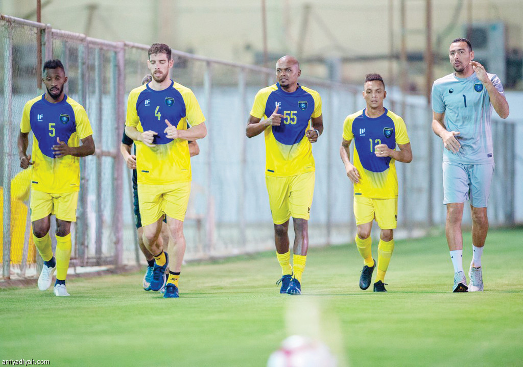 صورة التقطت أمس للاعبي فريق التعاون يركضون في بداية تدريباتهم (المركز الإعلامي ـ التعاون)