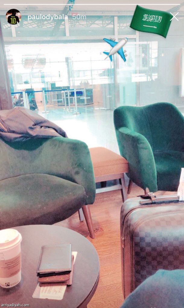 نشر النجم العالمي باولو ديبالا لاعب يوفنتوس الإيطالي ومنتخب الأرجنتين، صورة عبر حسابه في موقع التواصل الاجتماعي "إنستجرام" وهو في صالة الانتظار في المطار، وأضاف أيقونة لعلم السعودية وأيقونة أخرى لطائرة.