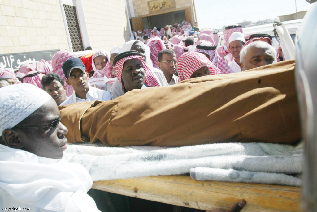 صورة التقطت بعد الصلاة على سعد الدوسري في 31 ديسمبر 2004 حيث حمل المصلون جثمانه (أرشيفية)