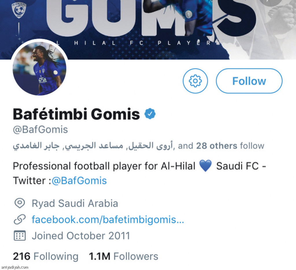 يعد حساب الفرنسي بافيتيمبي جوميز لاعب الهـلال في موقع التواصل الاجتماعي "تويتر" الأكثر تفاعلاً وعدداً من بين حسابات هدافي دوري كأس محمد بن سلمـان للمحترفين.