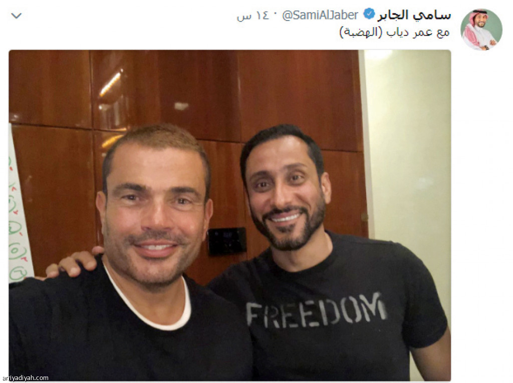 نشر سامي الجابر رئيس نادي الهلال السابق، عبر حسابه في موقع التواصل الاجتماعي "تويتر" صورة تجمعه مع عمرو دياب المطرب المصري في الولايات المتحدة الأمريكية.