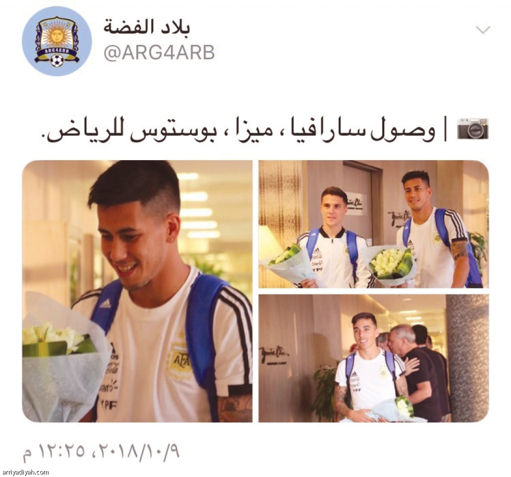وصل مساء أمس الثلاثاء إلى الرياض ثلاثي منتخب الأرجنتين الأول لكرة القدم: سارافيا، ميزا، وبوستوس، للانضمام إلى بعثة التانجو الموجودة في السعودية للمشاركة في البطولة الرباعية. ونشر حساب “بلاد الفضة” المهتم بالمنتخب الأرجنتيني، باللغة العربية، أخبار وصول الثلاثي في “تويتر”.